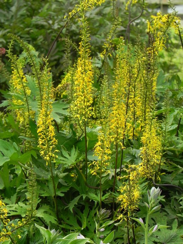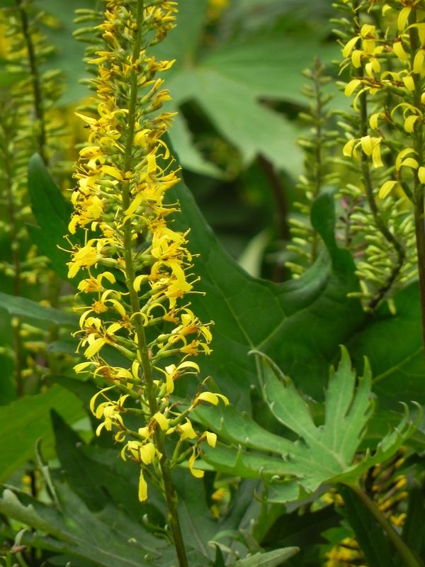 grupa roślin: BYLINYstanowisko: Okazała bylina o dłoniastych, ostro klapowanych liściach i żółtych, drobnych koszyczkach kwiatowych zabranych w wysokie kłosy. Roślina niezwykle efektowna, preferująca stanowiska półcieniste i cieniste, gleby żyzne, próchniczne stale wilgotne. Niekiedy bywają sadzone w miejscach bardziej nasłonecznionych ale w upalne jeżeli gleba nie jest w tych miejscach naprawdę mokra, ich liście brzydko więdną.