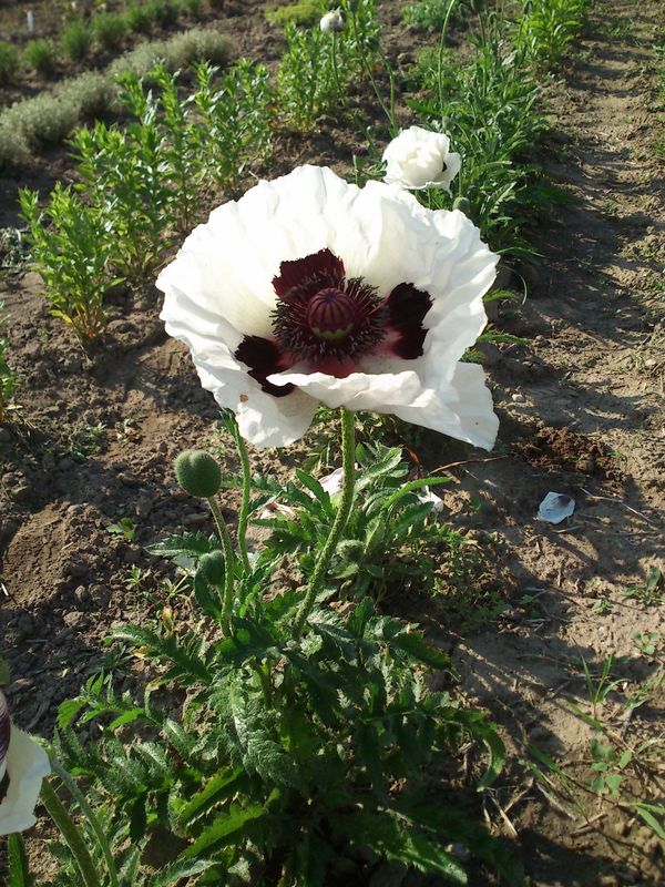 grupa roślin: BYLINYstanowisko: Biały mak o płatkach z charakterystyczną ciemną plama u nasady płatków oraz prawie czarnymi pręcikami otaczającymi równie ciemny słupek w środku. Preferuje stanowiska słoneczne, gleby średnie lub lekkie, przepuszczalne. Na glebach zbyt mokrych i ciężkich szybko ginie. Roślina po kwitnieniu przechodzi w letni stan uśpienia (część nadziemna zamiera), by ponownie pojawić się na jesieni. Kwiaty nadają się do ciecia w fazie pękającego pąka. Roślina posiada również atrakcyjne torebki nasienne tzw. makówki.