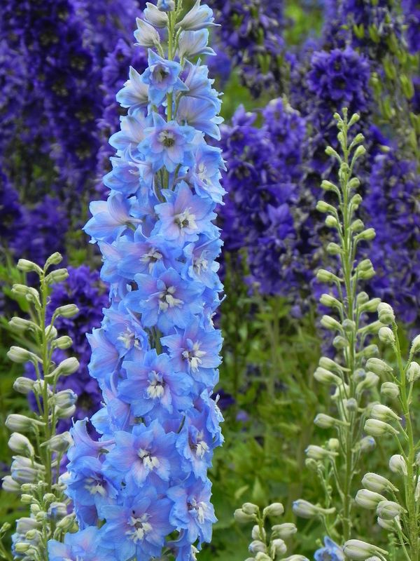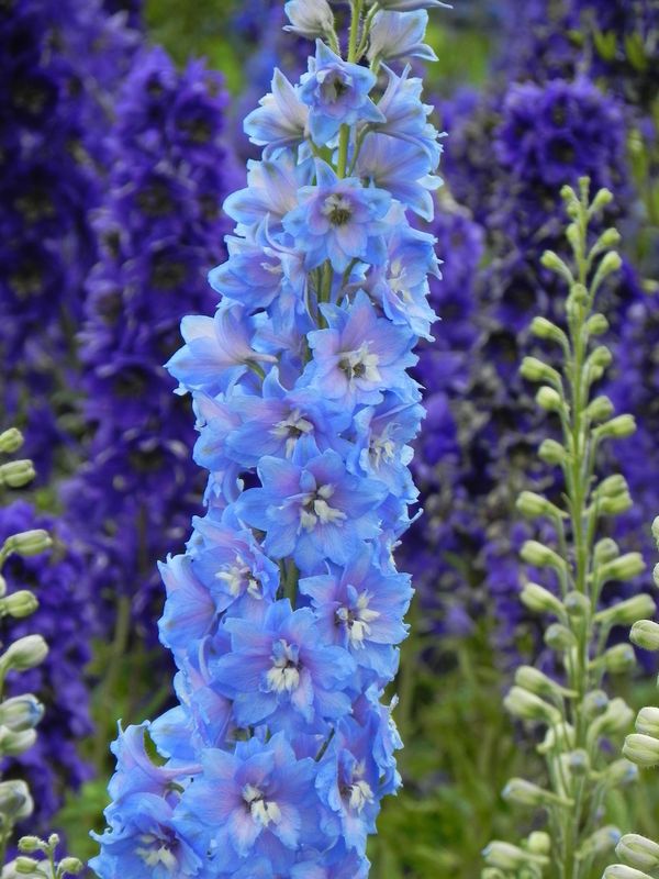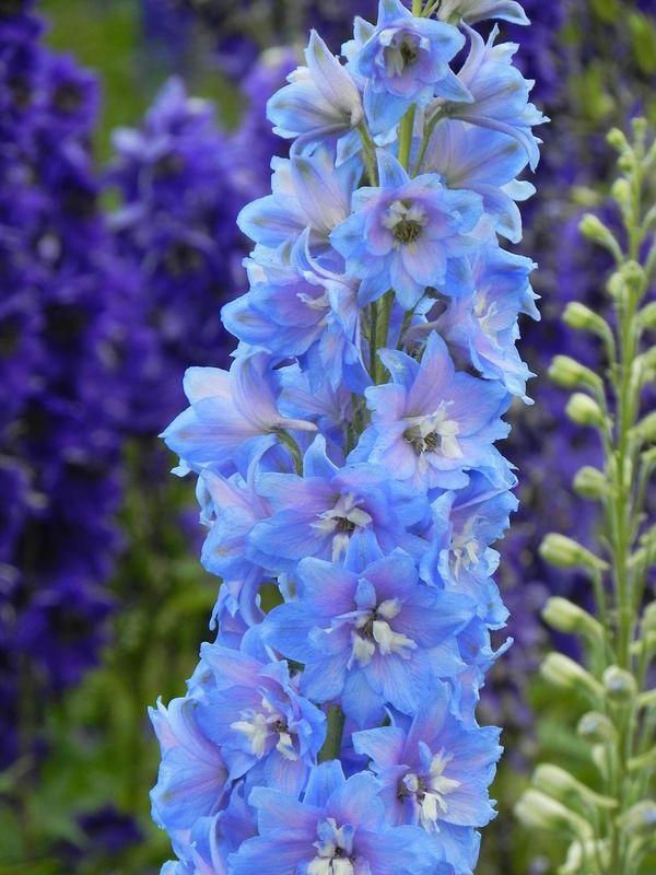 grupa roślin: BYLINYstanowisko: Okazała bylina o sztywnych i mocnych pędach kwiatostanowych zakończonych okazałymi jasnoniebieskimi kwiatami o białym oku. Kwiaty niezwykle efektowne nadają się do cięcia a nawożenie dodatkową dawką fosforu znacząco wpływa na poprawę kwitnienia. Roślina preferuje stanowiska słoneczne, gleby żyzne, głęboko uprawiane. Po pierwszym kwitnieniu wskazane wycięcie pędów kwiatostanowych tuż nad ziemią. Polecana na rabaty, do sadzenia przy ogrodzeniach, ścianach budynków czy w ogrodach naturalistycznych.